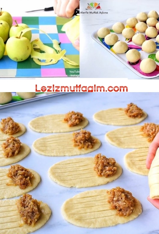 Kanalımdan ve mutfağımdan hepinize kucak dolusu sevgiler selamlar değerli izleyicilerim  bugün de sizler için şekli ve lezzeti şahane nefis bir elmalı kurabiye tarifi hazırladım bol iç malzemeli ve tadına doyum olmayan bu tarifimi muhakkak deneyin ve kaydedin !!
